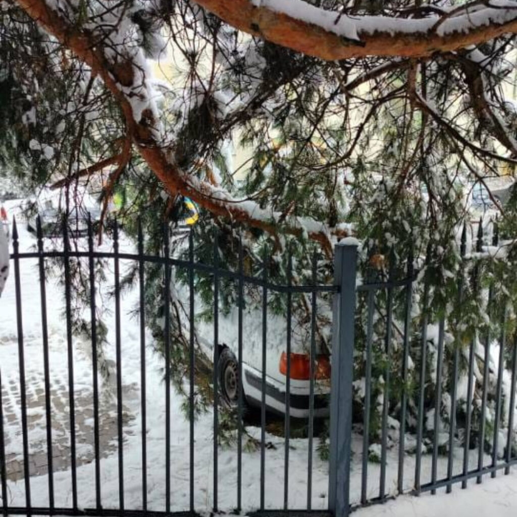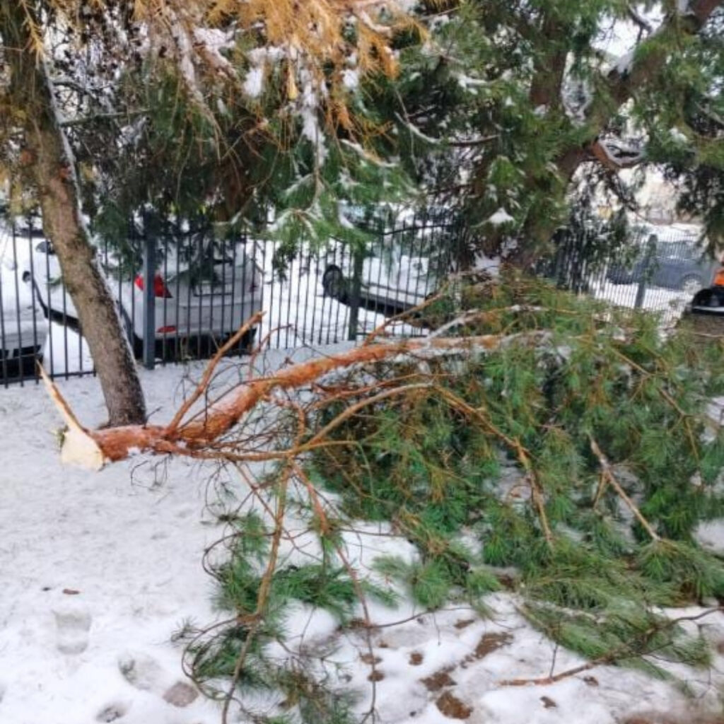 Pomimo prowadzonych kontroli i działań prewencyjnych, dziś (14 stycznia) doszło do złamania konaru sosny pod ciężarem śniegu. Gałąź spadła na zaparkowany samochód. Na szczęście nie doszło do uszkodzeń pojazdu, jednak zdarzenie to pokazuje, że zimowe warunki mogą być nieprzewidywalne.